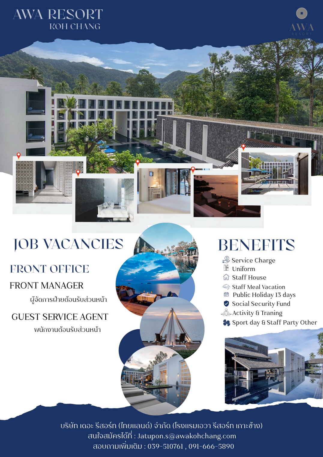 บริษัท ธัญ โฮลดิ้ง จำกัด ขออนุญาตประกาศรับสมัครงาน โรงแรมในเครือ . โรงแรมเอวา เกาะช้าง...