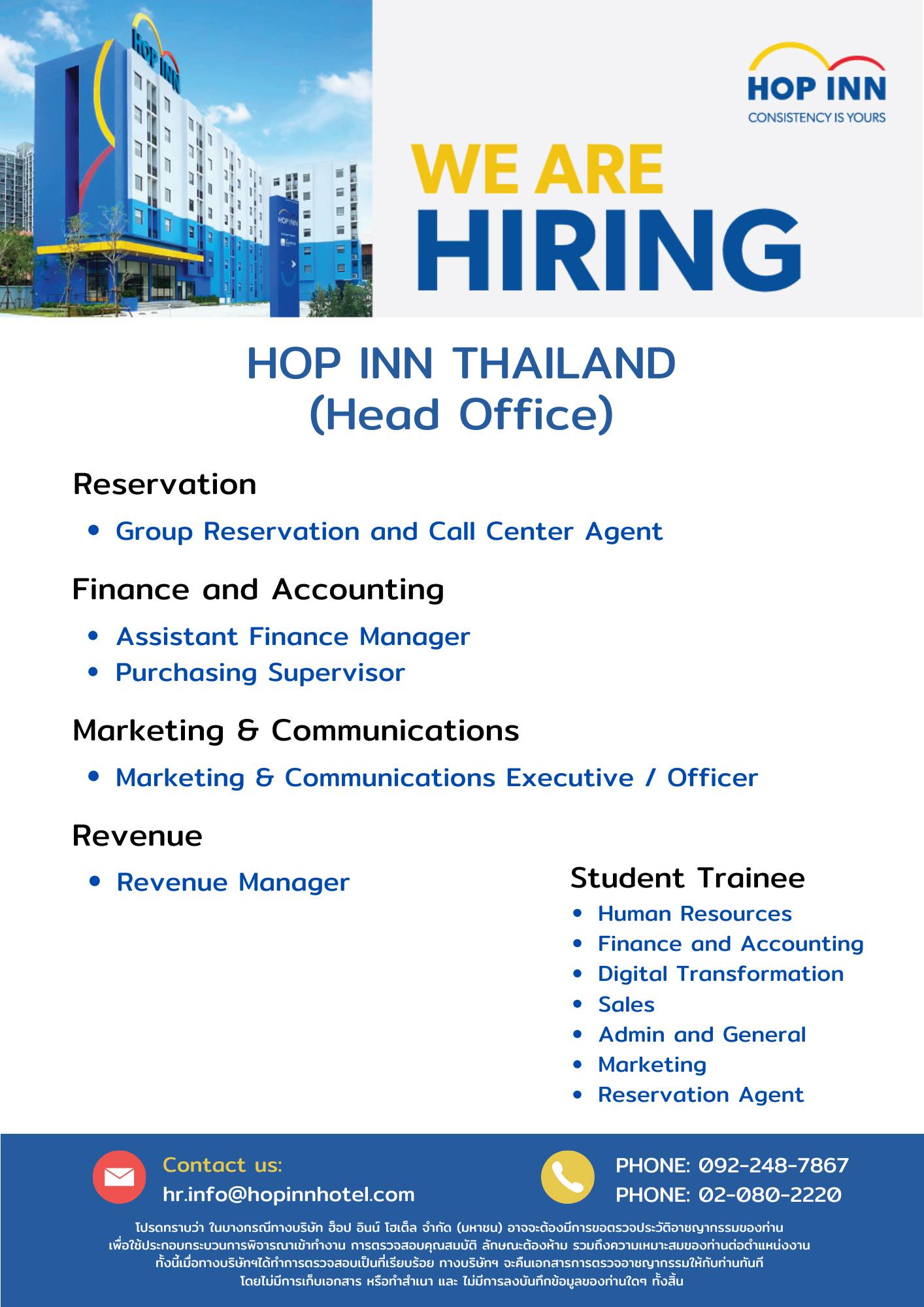 อ่านต่อHop Inn Thailand ประชาสัมพันธ์ตำแหน่งงานว่าง ประจำสำนักงานใหญ่