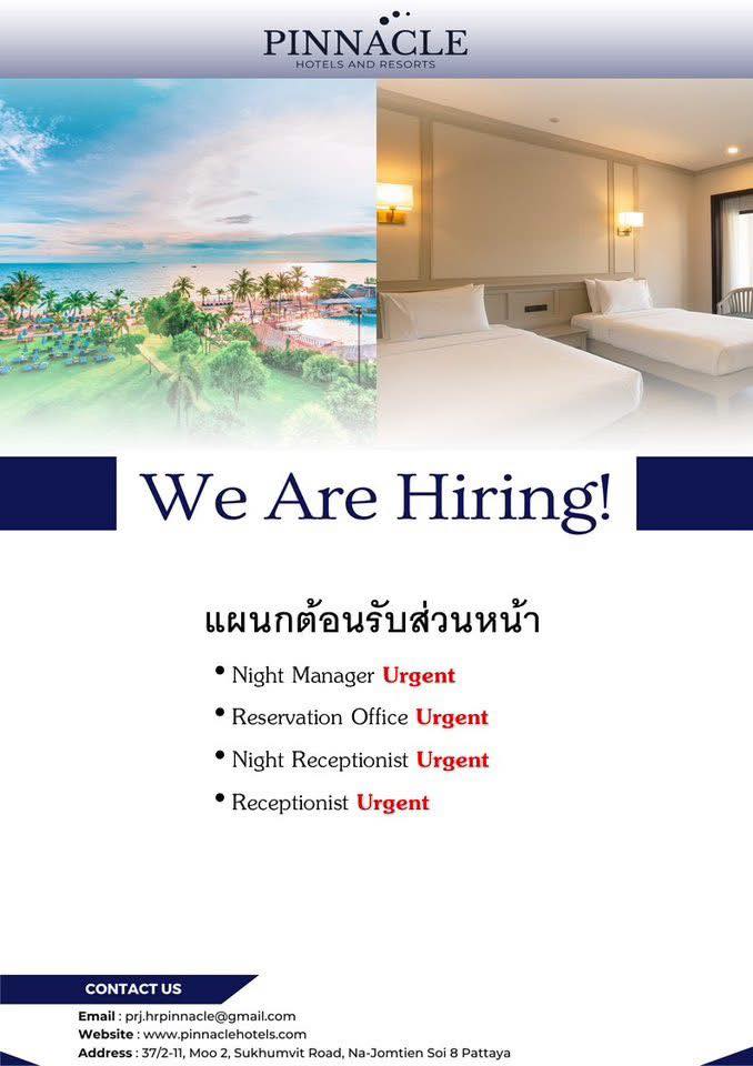 โรงแรม พินนาเคิล แกรนด์ จอมเทียน รีสอร์ท !! ต้องการรับสมัคร ด่วน ขอคนมีประสบการณ์นะคะ...