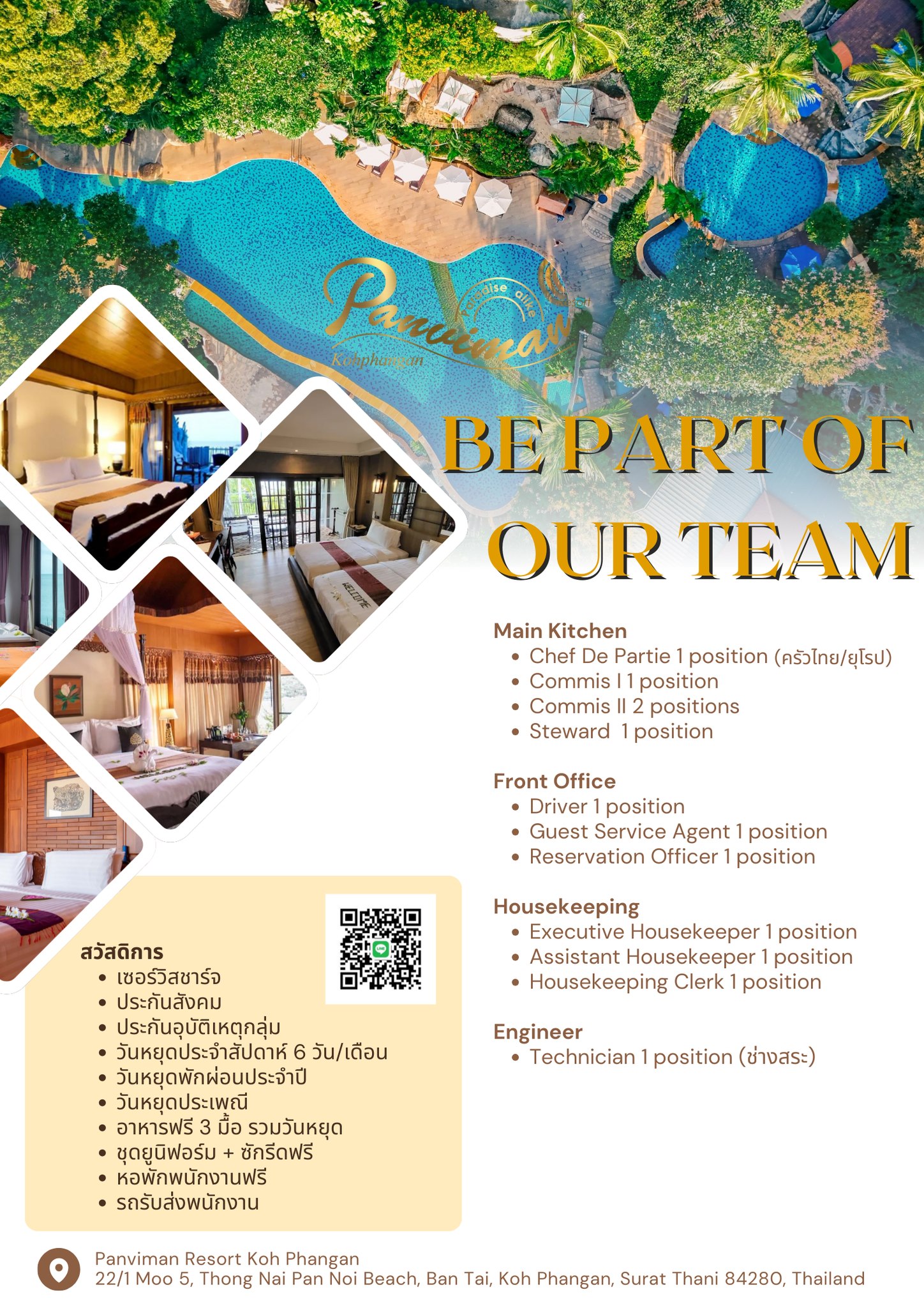 จงก้าวไปข้างหน้า ถึงจะช้าแต่ก็ยังดีกว่าถอยหลัง ปานวิมาน รีสอร์ท เกาะพะงัน กำลังมองหาคนเก่งมาร่วมทีม! เราเปิดรับสมัคร พนักงานประจำ และนักศึกษาฝึกงาน...