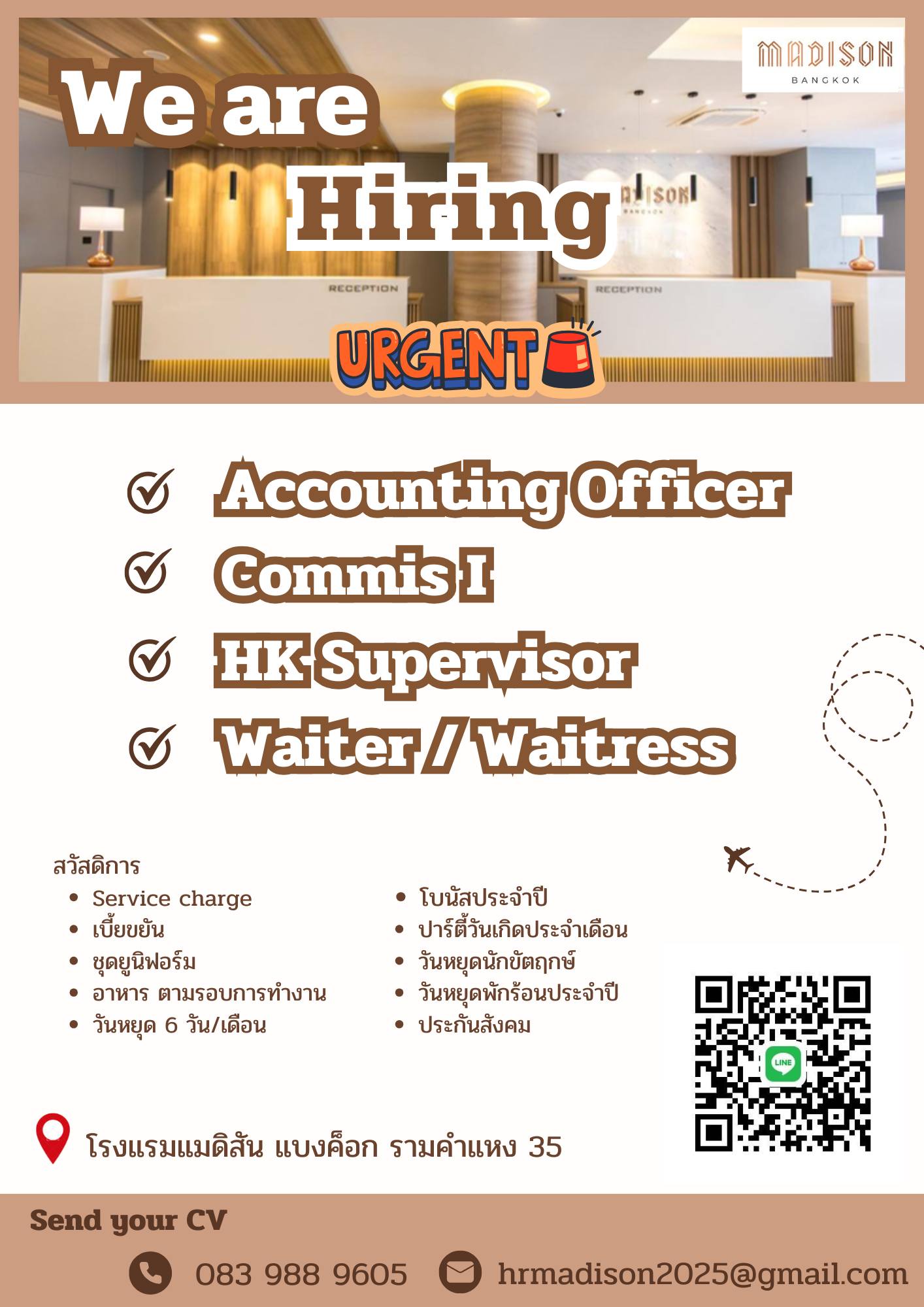 โอกาสดีๆมาแล้ว ใครที่กำลังมาหางานใหม่ มาทางนี้เลย ด่วนๆๆ โรงแรมแมดิสัน รามคำแหง 35 **ประกาศรับสมัครงาน** ตำแหน่ง...