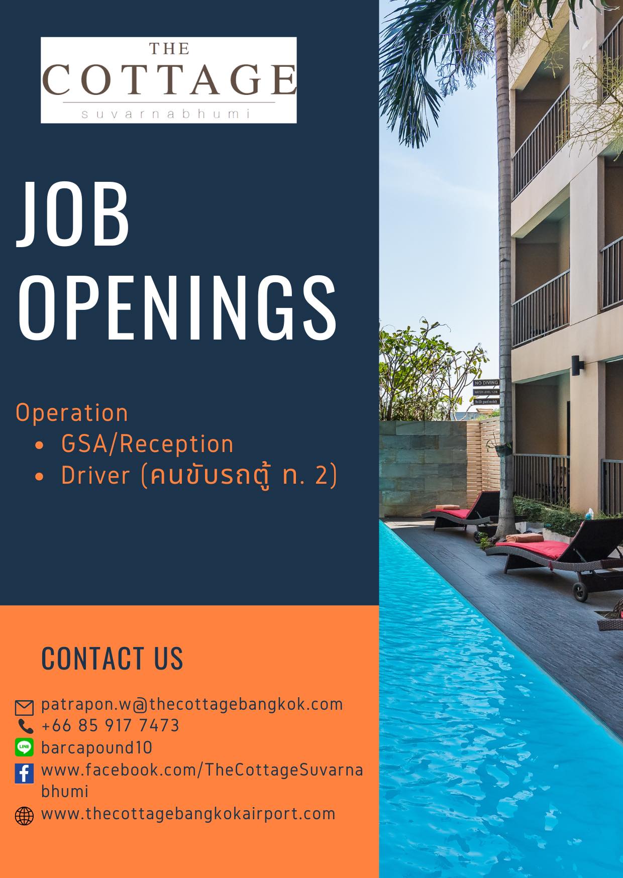 The Cottage Suvarnabhumi เปิดรับตำแหน่ง – GSA / Receptionist (พนักงานต้อนรับส่วนหน้า)...