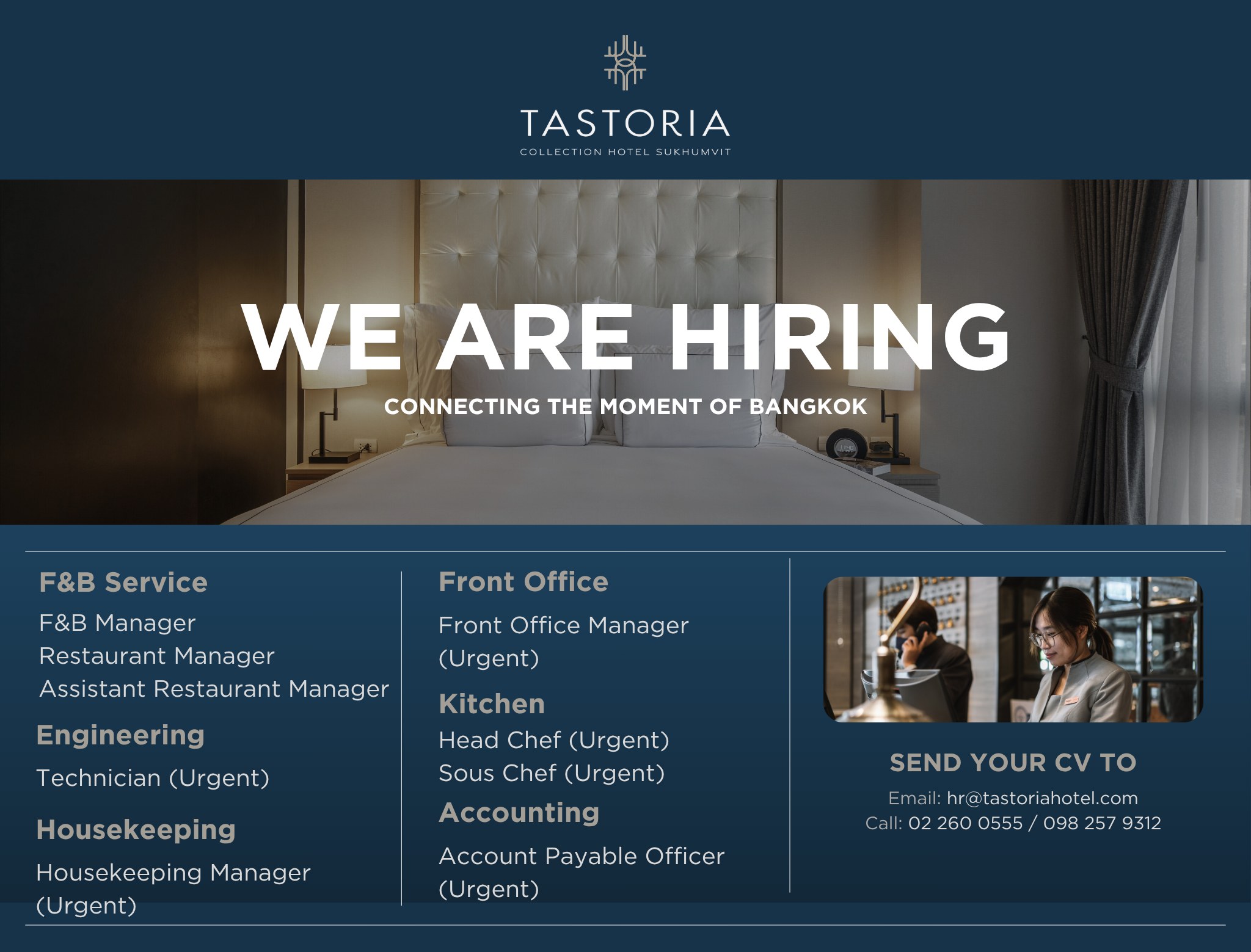 Tastoria Collection Hotel Sukhumvit กําลังมองหาผู้สมัครเพื่อเป็นส่วนหนึ่งในครอบครัวของเรา ส่ง CV ที่ e-mail...