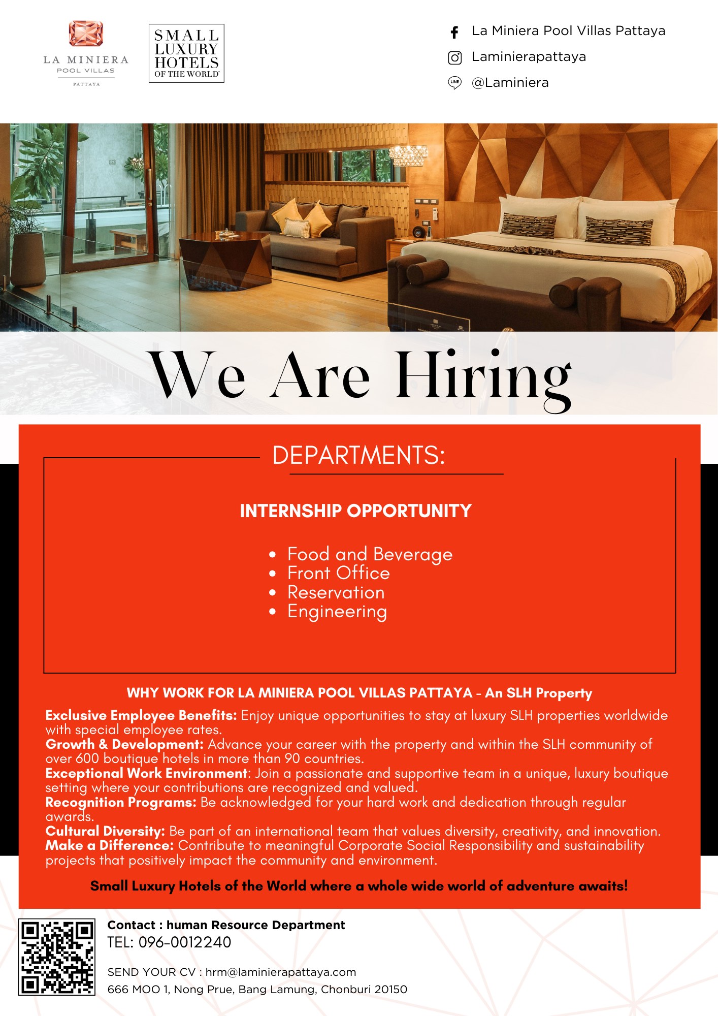 อ่านต่อโรงแรม ลา มิเนียร่า พูลวิลลา พัทยา ( La Miniera Pool Villas Pattaya ) เปิดรับนักศึกษาฝึกงาน