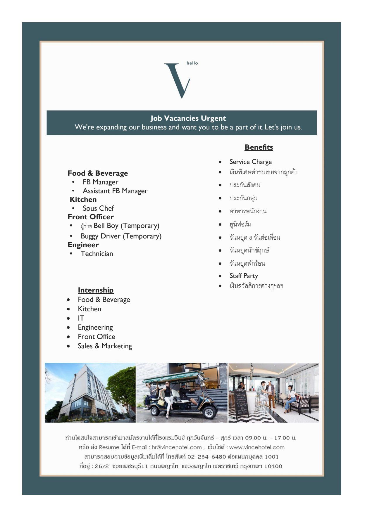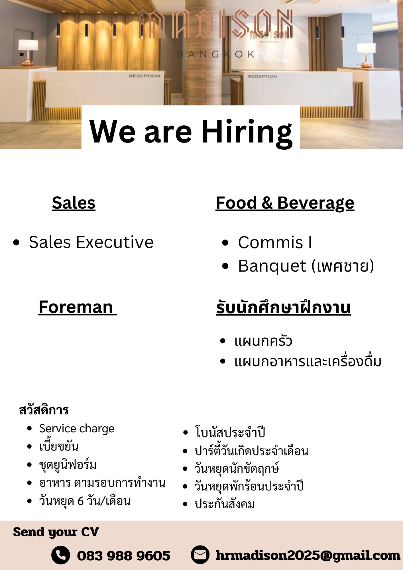 Theatre Residence/MOWA ยินดีต้อนรับบุคลากร เพื่อเข้ามาเป็นส่วนหนึ่งของครอบครัวเรา ท่านที่สนใจ สามารถส่ง CV. เพื่อเข้าร่วมพิจารณาได้ตามรายละเอียดการรับสมัครค่ะ พิจารณาเฉพาะคนไทย...