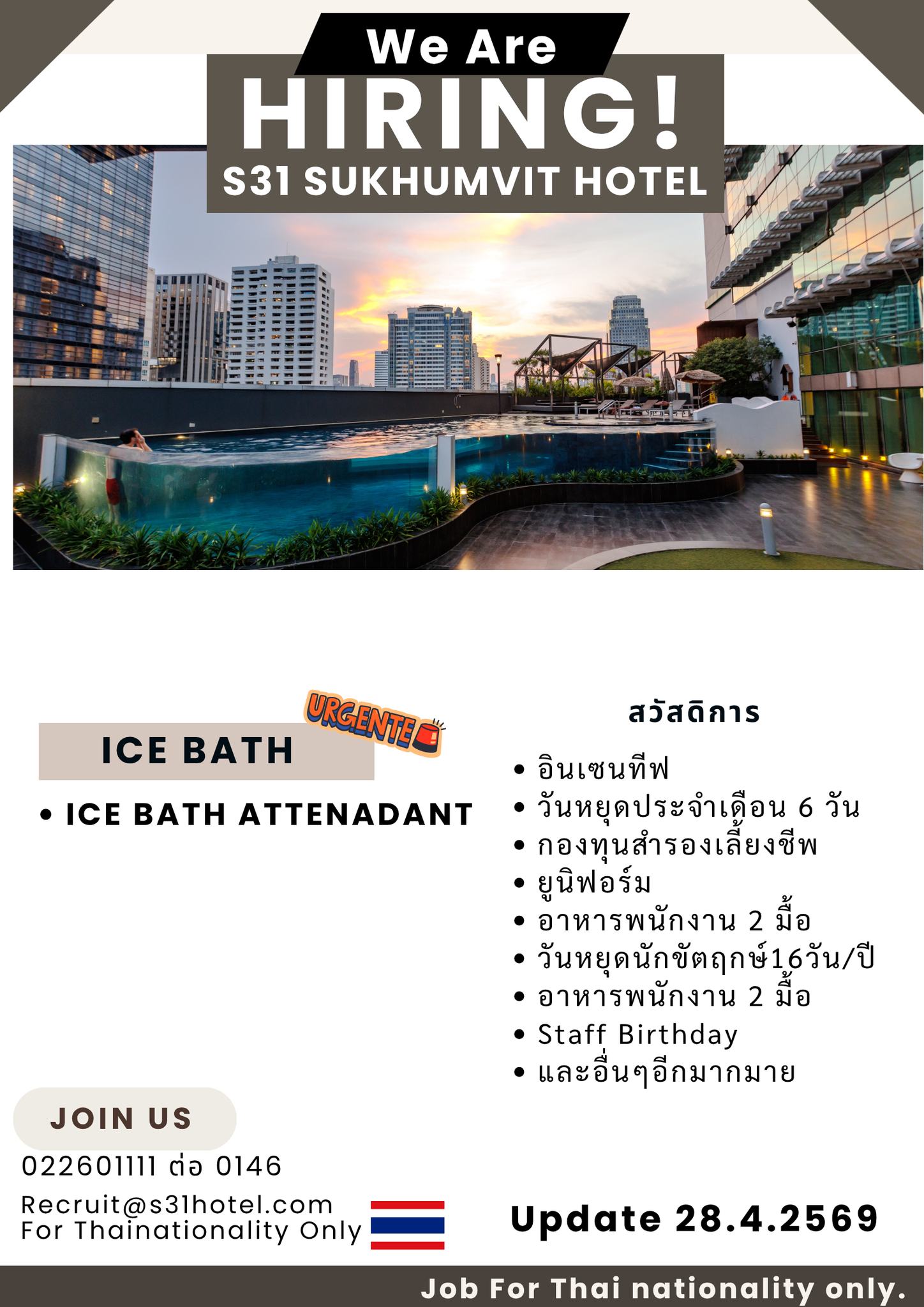 ขออนุญาตประชาสัมพันธ์ อัพเดทตำแหน่งงานว่างโรงแรมวินซ์ ประตูน้ำ (Vince Hotel Pratunam) อัพเดทวันที่ 27 เมษายน...