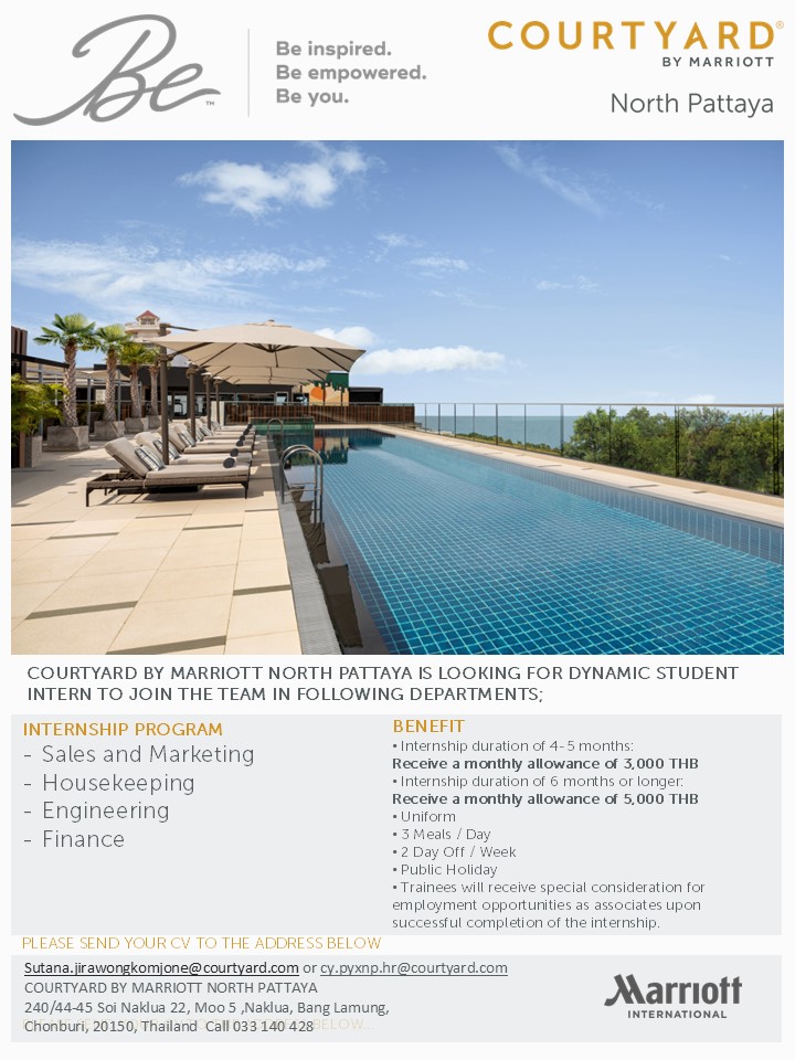 อ่านต่อเปิดรับนักศึกษาฝึกงาน ปี 2026 (2569) ที่ Courtyard by Marriott North Pattaya