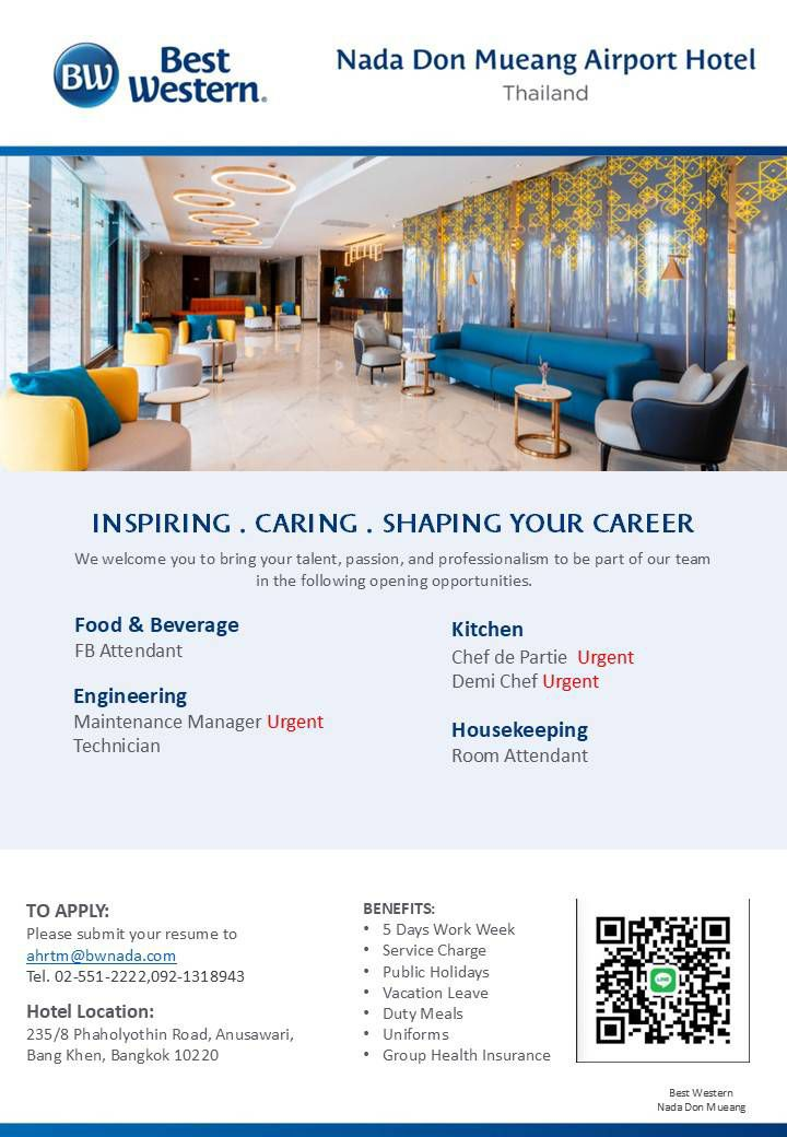 อ่านต่อBest Western Nada Don Mueang Airport Hotel 💙🤍INSPIRING . CARING . SHAPING YOUR CAREER