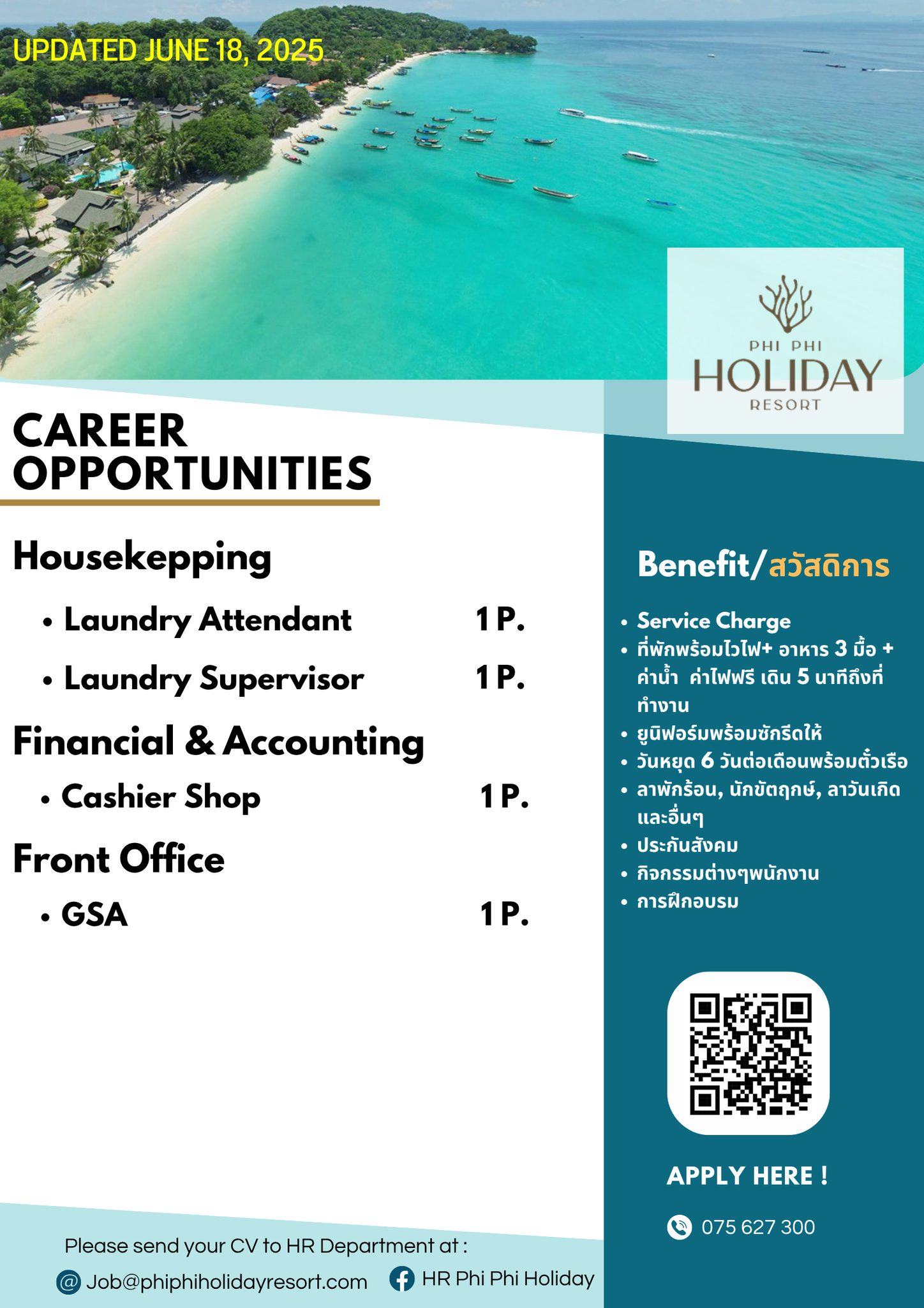 อ่านต่อโรงแรม พีพี ฮอลิเดย์ รีสอร์ท เกาะพีพี เปิดรับพนักงาน 📌 Laundry Attendant...